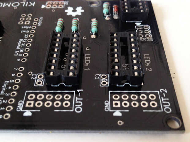- Coloca cada zócalo en su lugar. Si bien el sentido es indistinto (ya electrónicamente lo único estamos haciendo es un puente entre cada contacto del PCB y cada pata de nuestro integrado), los integrados sí tienen un sentido. Algunos zócalos tienen, como ayuda visual para la colocación posterior del integrado, una marca en uno de sus lados. Haz esa marca coincida con la marca del PCB para evitar confundirte luego.