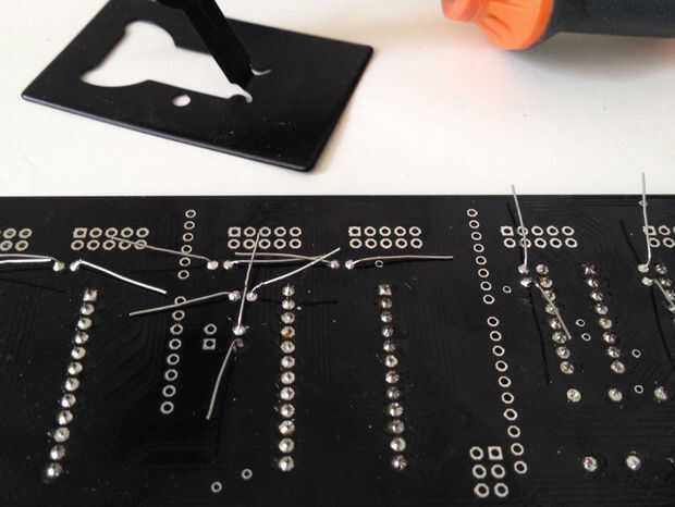 - Da vuelta la placa y destacan cada la pata a su respectivo contacto en el PCB.