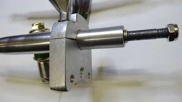 Primero tienes que moler del eje del eje que son capaces de empujar el soporte del eje en el eje. Una vez completado, usted tiene que motorholder para el soporte del eje del tornillo. Para ese paso, usé tres tornillos y tres tuercas autoblocantes.