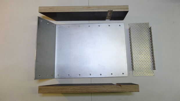 • Entonces usted dobla el metal perforado, que tiene la misma alta como la madera contrachapada de 18mm