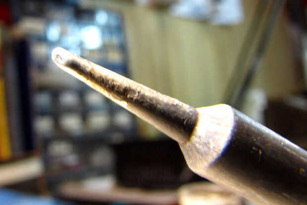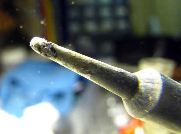 Mi rutina es, cada vez que recojo el hierro, le dan un trapo rápido en la esponja, luego la lata. Ahora tengo una punta limpia brillante para la eficacia máxima. El blob extra poco de soldadura en la punta se ajusta a la obra, aumentando la transferencia de calor.
