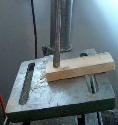 taladré un agujero de 1/2 pulgada en ambos extremos de las piezas de 1 x 2. Yo les perforados en un ángulo de 15 grados. Los agujeros casi fueron a través de 1 x 2, pero no del todo. Aunque he usado un taladro, un taladro Hand-held funcionaría muy bien, demasiado.