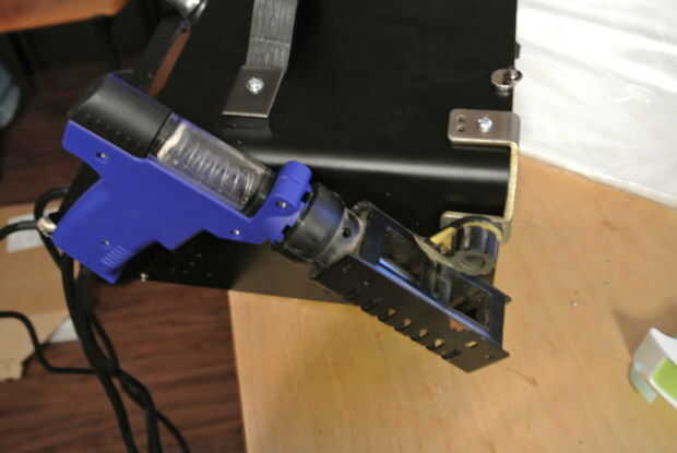 En primer lugar, hice algunas pruebas de la bomba de vacío para ver si funcionaría. Por desgracia, mis pruebas indican que el diafragma de la bomba en la estación no mover suficiente aire para alimentar un desoldador. No podía borrar un plateado a través del orificio. Este hack habría sido mucho mejor si podría haber utilizado la bomba de aire existente.