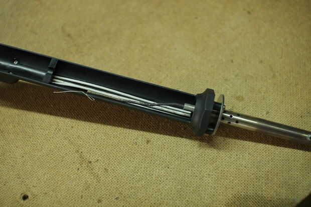 Ahora ponemos esta bobina en el eje de hierro desoldadura. Esta forma, se calentará la bobina de la plancha, y cuando el aire fluye a través de ella, se liberan más calor que el desnudo del mismo eje.