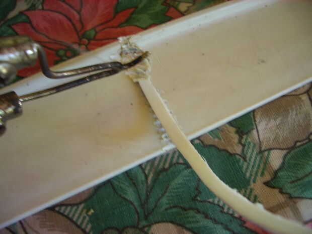 Para reforzar la soldadura, corte tiras delgadas de una botella de desused de polietileno duro y utilizado como llenador, es decir como estaño (lata).