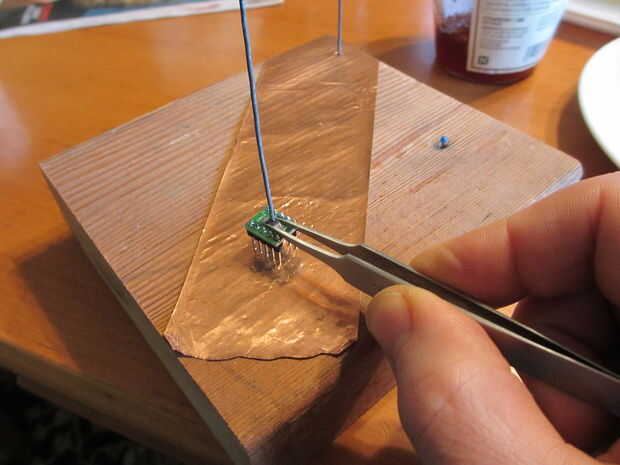 puede hacer una plantilla para chips de montaje superficial y en otras partes mientras que usted les de un pedazo de madera y un alambre de soldadura. Esto gana tratando de usar unas pinzas!Paso 1: Hacer la plantilla Obtener un pedazo de madera y un