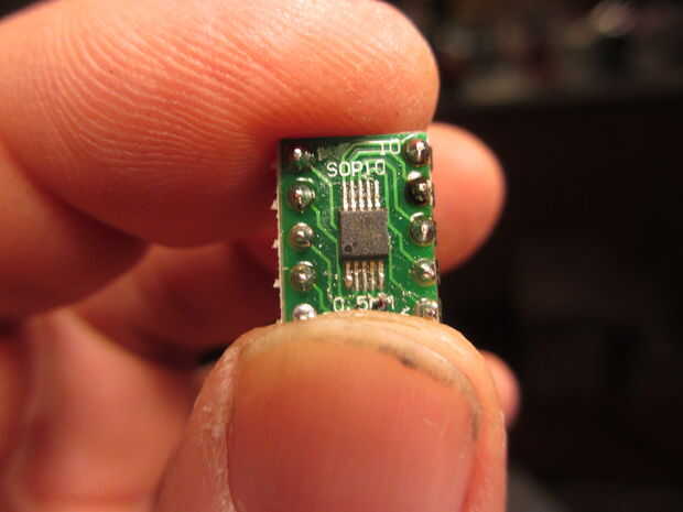 por lo que he estado trabajando en una nueva técnica para volver a fundir la soldadura sobre dispositivos de montaje superficial.  El problema es que algunos tienen cojines debajo del chip que no se puede llegar con una pistola.  Normalmente se usarí