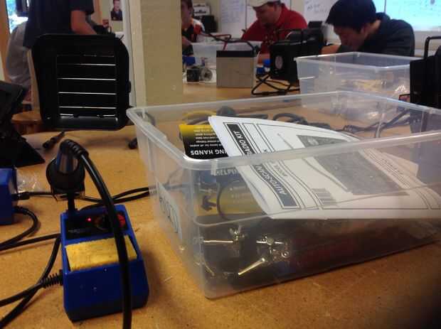 Al crear una estación de soldadura, primero asegúrese de tener todos los materiales necesarios antes de enchufar cualquier cosa. Después de Lea las instrucciones sobre la tarea para el día. Una vez que todos los materiales se recogen y ha leído las instrucciones, encender el soldador y empezar a calentarlo. Como la plancha se está calentando debe conectar el ventilador que lleva los vapores creados al soldar para evitar inhalación de.