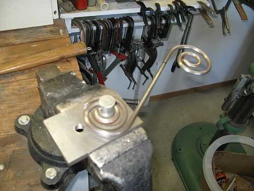 La segunda espiral de la varilla de la base de la espiral se hace igual que la espiral en el otro extremo. Asegúrese de que vas en sentido contrario para que la base se vea como la foto.