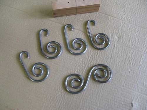 Ahora todas las barras se doblan las lengüetas se cortan y detalles están listos para la soldadura. Tenga en cuenta que espirales en la base y las espirales en la parte inferior de los detalles secundarios son los mismos. Vamos a preparar las piezas a soldar...