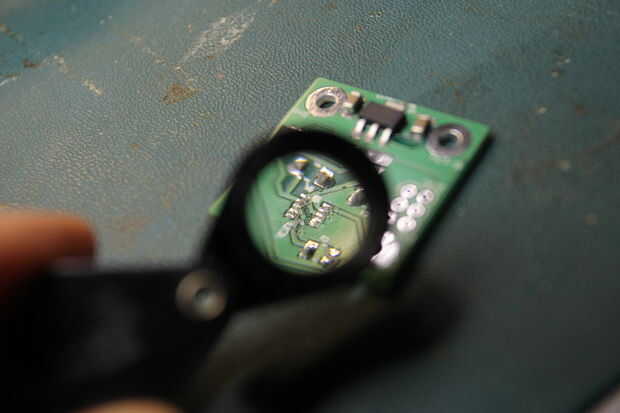 Uno de los componentes en la board es un acelerómetro de 2x2m m con 10 pernos. Los pasadores eran tan pequeños que no pude sumergir individualmente las pastillas. Después de algún ensayo y error de tener a soldadura o muy poco me di cuenta de un método de (casi) a prueba de errores. Tomar un poquito de ZCHECK y aplicar en