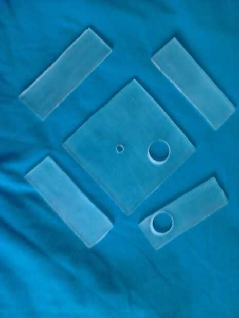 Creo que una hoja vieja y rota acrylvidrio grande dejar de fumar. He lavado y había usado para la caja. Corté los paneles (1x90mm * 90mm, 4x90mm * 30 m m)