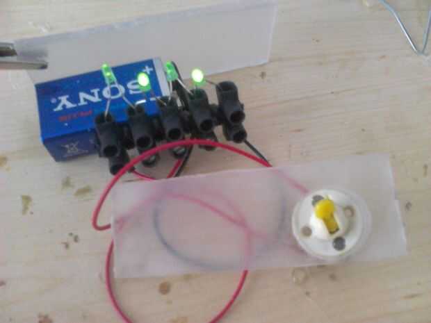 Pongo 4 LEDs + interruptor (verde es serie) en la caja para algunos efectos de luz.