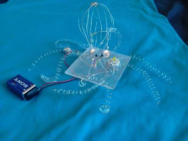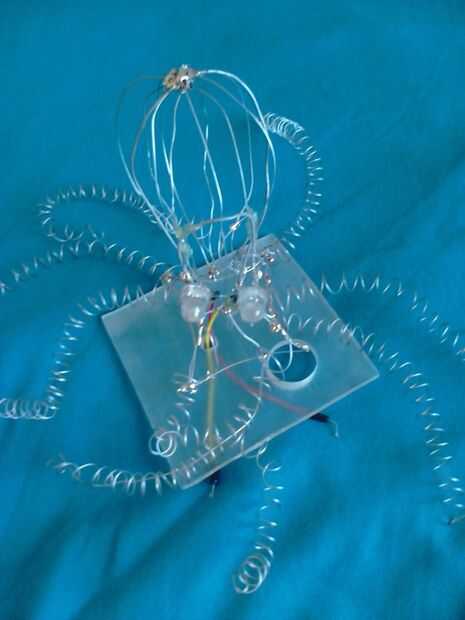 Primero quería poner la batería en la cabeza del oczopus. Pero he cambiado mi mente y hace una pequeña caja de acrylvidrio para la batería y los interruptores.