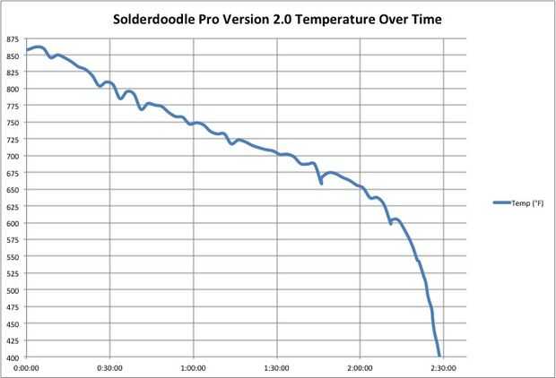 Solderdoodle Pro utiliza un controlador de carga de alta eficiencia, alta potencia, utiliza la misma batería que se utiliza en las coches eléctricos de Tesla y utiliza puntas reemplazables.