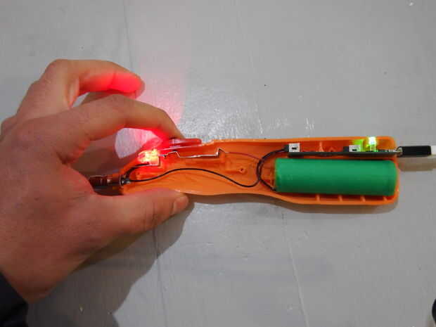 Prueba otra vez seguridad y Troubleshootingto asegurarán de que el poder se enciende cuando el interruptor se activa y carga correctamente cuando está conectado a un puerto USB.