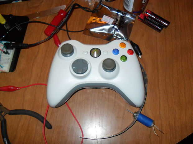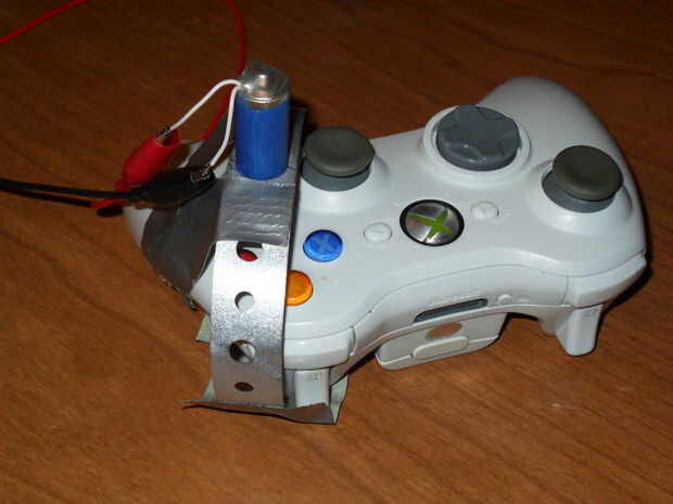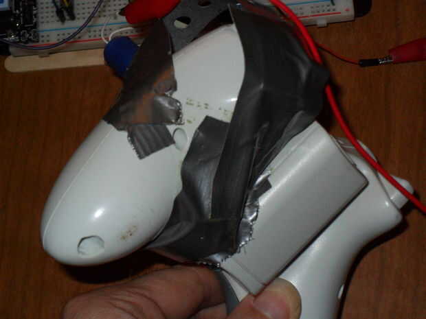 Utilice más cinta adhesiva para fijar el borde derecho de la plomería hasta el borde derecho del controlador de juego.