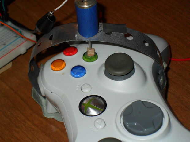 Clip un trozo de palito de algo más pequeño que el diámetro del botón regulador del juego.