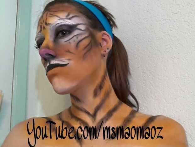 YouTube.com/msmaomaozPaso 1: esquema su diseño del esquema. Usé un lápiz delineador de ojos para hacer esto.Paso 2: blanco y negro agregar blanco para la mayoría de la cara, añadir negro a las pegatinas de ojo y poner un poco en la parte superior de