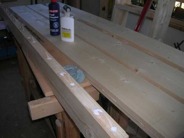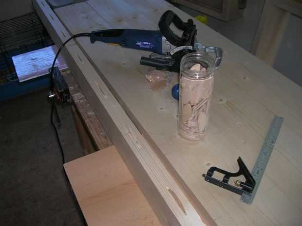 Después de todas las juntas están listas le caben galleta sin pegamento y cheak si todo cabe bien. Si estás contento con los resultados encolar todas las juntas y duelas, con adhisave de madera y pegamento roller para incluso pegamento sprad y aprovechar plankes de lugar con mazo de goma.