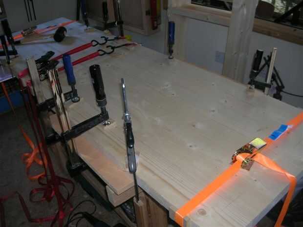 Seguro todos plankes con correa de trinquete o pinza larga que no tengo en mis imágenes. Y muy importante usar pinzas para tirar tablones sobre una superficie plana a pravent.