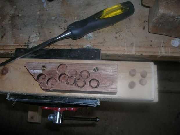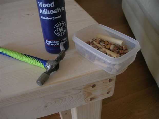 Esta es la parte del proyecto, hice una caja llena de tapones de madera dura 10mm para cerrar todos los agujeros. Utilizar un goteo de pegamento en el tapón de madera y grifo en su lugar con el martillo de pin deja un 2-3mm sobre colgar, limpie la cola de acceso con un paño húmedo, después de pegamento usar un plano de bloque a la arena suave.