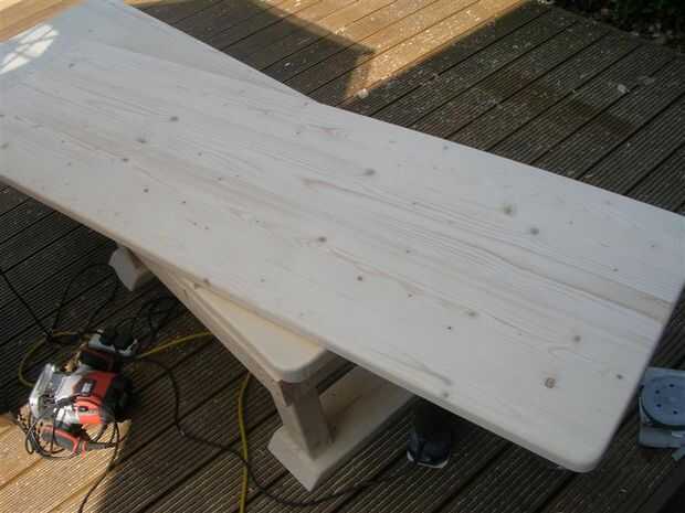Luego redondear todos los bordes utilicé un router eléctrico corriendo alrededor de la mesa que bonito cantos.