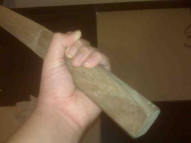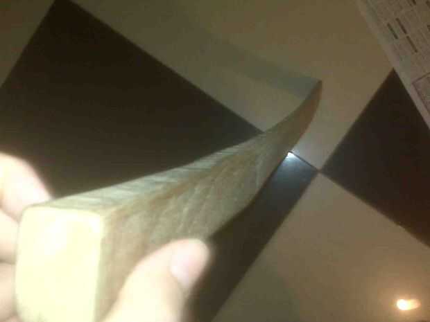 Ahora, estoy muy contento con el Bokuto hice. Mímico la longitud y la curva de una Katana. Tiene un redondeado Tsuka (empuñadura) para que sepas donde los extremos de la Tsuka y la hoja empieza. Está hecho de una sola pieza sólida de madera de teca y es muy resistente. Me las arreglé para golpear repetidamente un cocotero en toda su fuerza con el Bokuto y ni una sola abolladura es evidente, por lo tanto el batalla listo pongo en el título.