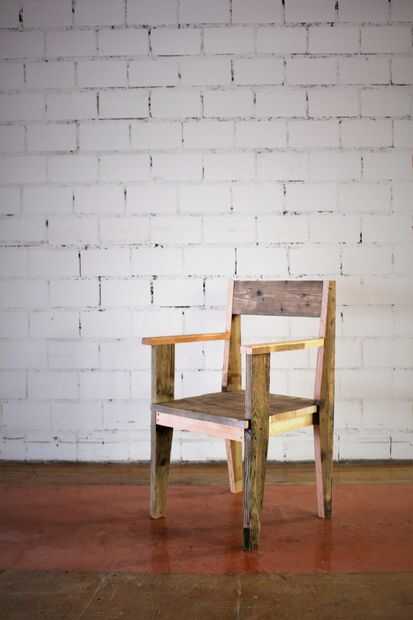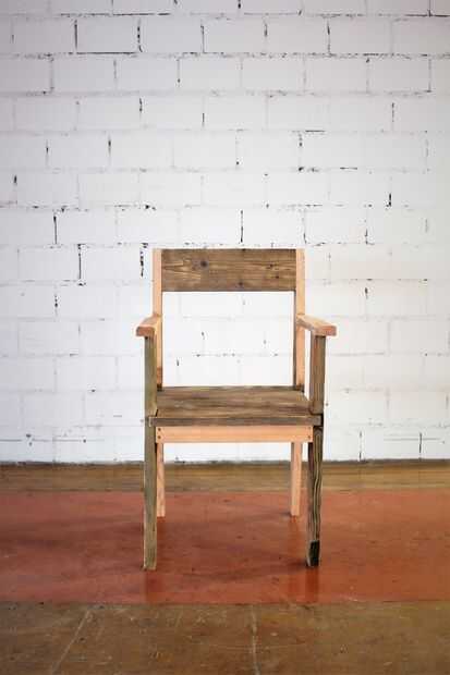 La inspiración para esta silla vino de ver uno en un muelle en el Lago Tahoe. Es grande – dos asientos bastante cómodamente – y altura, con una bonita vista con protección contra balas de cañón y perros mojados.Éste está hecho de madera reciclada de