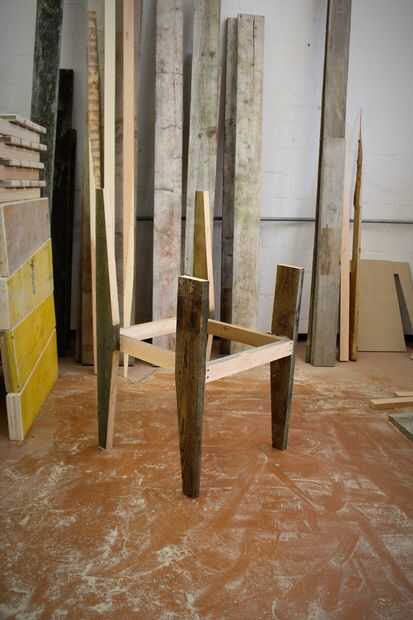 La inspiración para esta silla vino de ver uno en un muelle en el Lago Tahoe. Es grande – dos asientos bastante cómodamente – y altura, con una bonita vista con protección contra balas de cañón y perros mojados.Éste está hecho de madera reciclada de