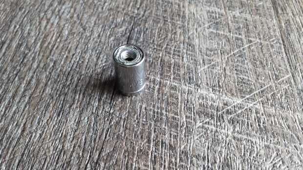 Tuerca M6 golpeó con la fuerza de una llave de tubo 3/8 de pulgada. Arreglar todas las arandelas de tornillos en la pila y asume del encogimiento del calor. Esto es de la misma manera como en la imagen.