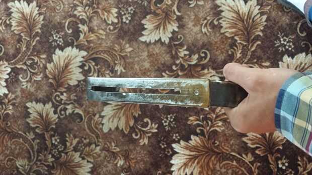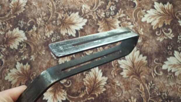 Una pieza plana de metal que tienen. Forma de la misma manera como en la foto. Cuando se forma una pieza de metal. Utilizando el centro de la molienda cortar finas tiras de un ancho de 6mm.