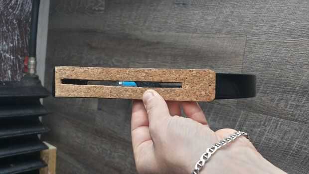 Tomamos la placa de corcho. Medimos la parte superior de mi metal donde se monta la cámara. Luego corte una pieza de dimensiones tales como la parte superior de la steadicam. Cortamos un agujero en el centro de la alfombra de corcho para el tornillo 1/4 de pulgada. Comprobar si se ajusta. Siguiente paso