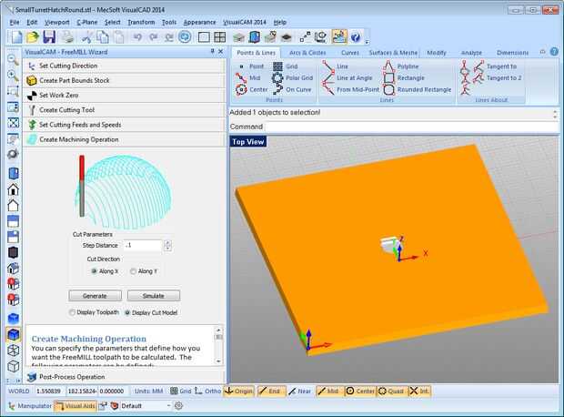 Haga clic en el botón 'Generar', después el botón 'Simular'. Esto te mostrará una vista previa del corte final. Asegúrese de que se ve la forma que desee. Esta vista previa le ayudará a entender las consecuencias de sus opciones de bit. Si usas un poco grande, extremos planos, no podrá ver mucho detalle. Si estás usando una pequeña, el bit del extremo de la bola, cosas lucirá mucho más suave y más detallada.