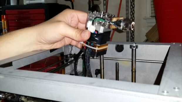ADVERTENCIA: Espere a que la cabeza de la extrusora se enfríe antes de intentar este paso. Se puede quemar seriamente si no eres cuidadoso. La cabeza de la extrusora se obtiene hasta aproximadamente 215 C o 420F. Puede hornear galletas en esta cosa.