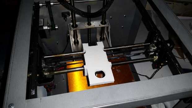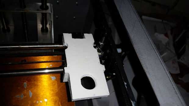 Colocar la montura debe ser bastante sencilla, pero podría necesitar un poco de maniobras, dependiendo de cuánto su parte deformada durante la impresión, cuántos errores impresión ocurridos, o cuánto diferentes tu carro es que la mía. Descubrí que presionando la espalda primero, luego tirando hacia abajo en el frente parecía funcionar bien. Es más importante preservar la parte delantera de la montura de las guías del tornillo trasero. Puede que necesite tomar una maquinilla de afeitar y recortar un poco fuera de los orificios para pernos guía para permitir suficiente espacio.