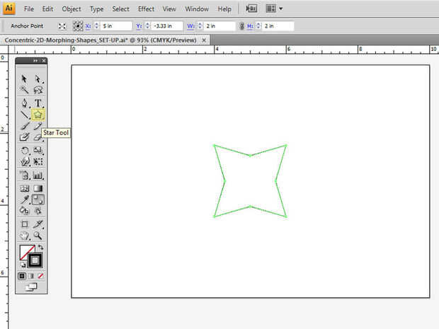 • Use la herramienta"estrella" para hacer un 2" cuadrado 4 punto estrellas en el centro exacto de su mesa de trabajo