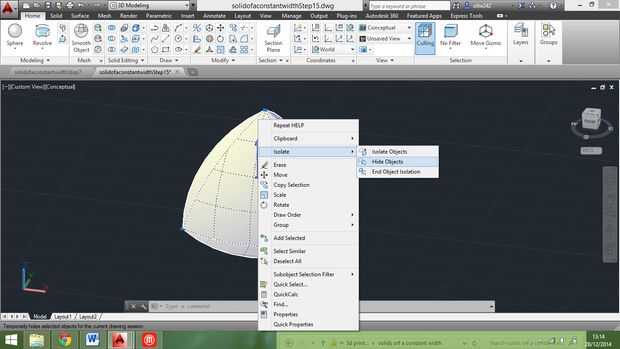 1) ocultar uno de los grandes rostros seleccionando uno y luego clic derecho y seleccionando "aislar" luego luego "ocultar objetos" / / Esto es para que no tengamos un agujero vacío en nuestro diseño.