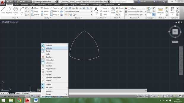 6) borrar nada a la izquierda de ese lado haciendo clic y pulsando eliminar / / usted debe dejarse la mitad un triángulo de Reuleaux como en la foto de arriba.