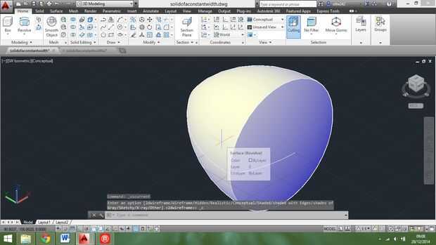 Ahora que ha terminado el tetraedro de Reuleaux. Usted probablemente está viendo como un marco de alambre 2D para verla más realista, haga clic en el marco 2D del alambre en la parte superior izquierda de su pantalla y seleccione conceptual si quiere girar su sólido:
