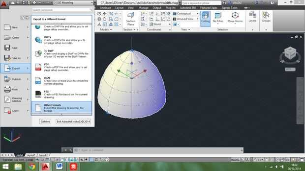 2) haga clic en la grande A AutoCAD en la esquina superior izquierda de la pantalla y haga clic en exportar y luego desplazarse hacia otros formatos.