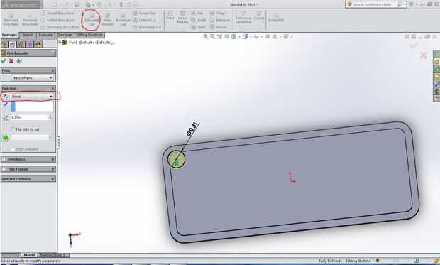 1. Abra un nuevo dibujo en la cara superior de la pieza (la extrusión en paso 6)