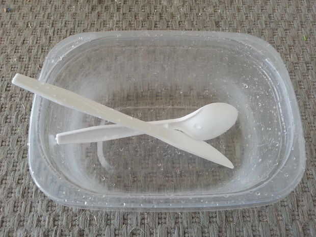 La limpieza de su vajilla de plástico con agua para su reutilización.