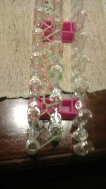 ¡ Es fácil! ¡ Muy fácil!Paso 1: Hacer un 8En su telar, tomar una banda y twist como la figura 8 y se coloca sobre dos palosPaso 2: Ponerlo Luego coloque dos bandas más en la parte superior sin torcer. Traer la última de ellas en la parte superior con