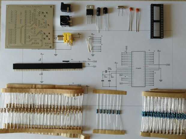 1 x PCB / tira-tablero / matriz-tablero (dependiendo de cómo el equipo va a ser construido. Si no se utiliza un PCB, pueden necesitar diferentes componentes ya que algunos tienen huellas como conector RCA que no se puede colocar en la tira de a bordo)