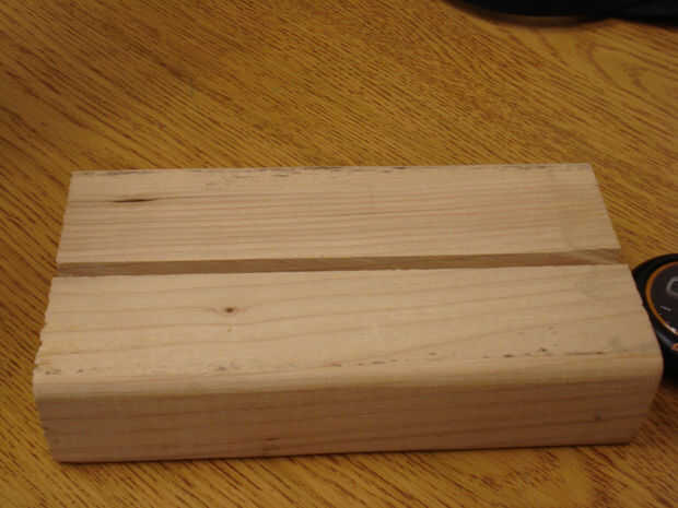 Después hemos perforado los agujeros para los altavoces, simplemente tomamos un 2 x 4 y corte una ranura en él utilizando la Sierra de mesa. Esta sería la pieza base que sostenga en posición vertical los altavoces.