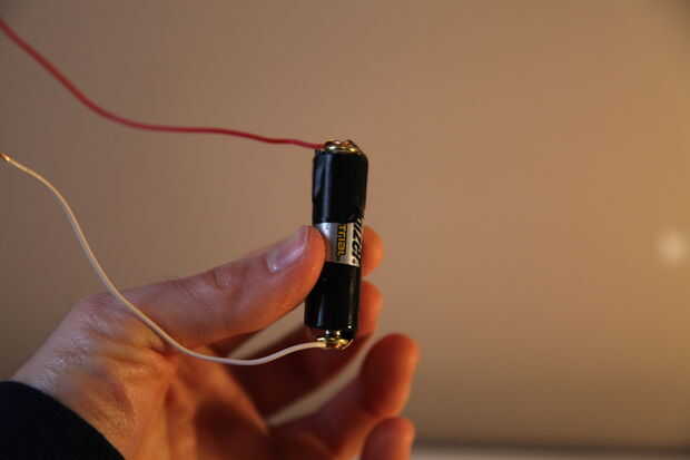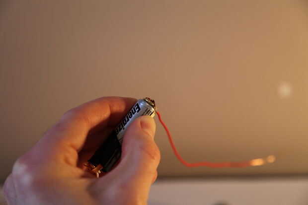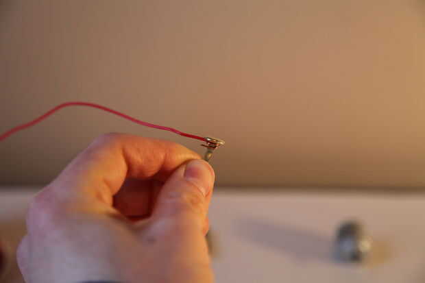 • Cada una de las piezas del tallo a los lados de la batería, cinta asegurando mantener buen contacto entre la cabeza del sujetador de latón y el extremo de la batería.