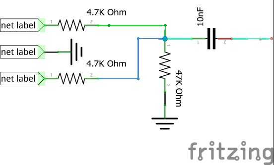 Esto no puede hacerse simplemente mediante la conexión de los canales izquierdos y derecho juntos. Tratar de podría llevar a shorts y alguna mala fase. (Imagina si el canal izquierdo era alto y la derecha era baja). Para evitar esto (o al menos disminuirlo), he implementado un circuito que encontré en línea en el tablero principal. Revisa el esquema arriba para instrucciones visuales. En definitiva la señal estéreo en mono tienes que: