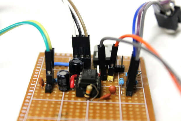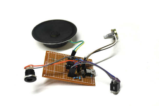 Finalmente hagamos uso de todas las cabeceras conectando nuestras entradas y salidas a ellos. Pele los extremos de nuestro cable de dupont y soldarlos a cada componente externo. Esto incluye: el potenciómetro, altavoz, DC jack, conector de audio de 1/8 de pulgada y LED indicador de.