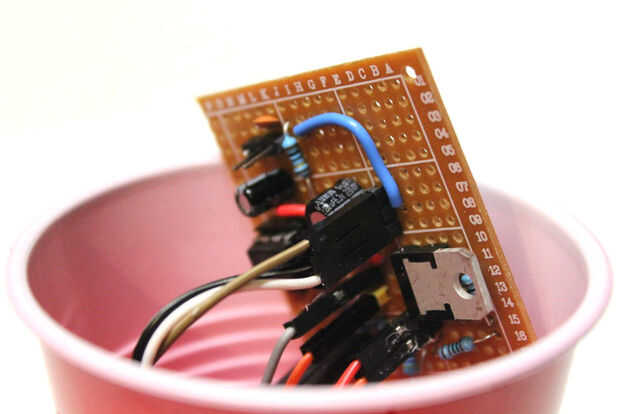 Usando unas pinzas o alicates de punta de aguja, conectar los cables de dupont para el encabezado masculino adecuado. Tenga especial cuidado de la polaridad por lo que no corta el circuito. Tratar de no tirar demasiado de los alambres como ellos (y la Copa) son muy frágiles.
